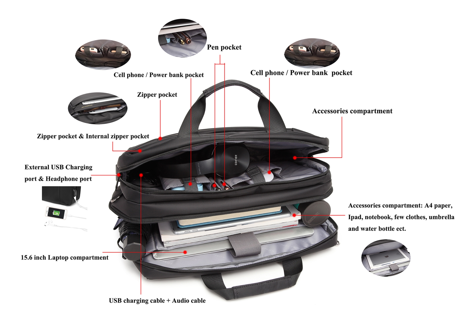 16" 4in1 USB Nylon Scratch-resistant & Waterproof functional laptop bag